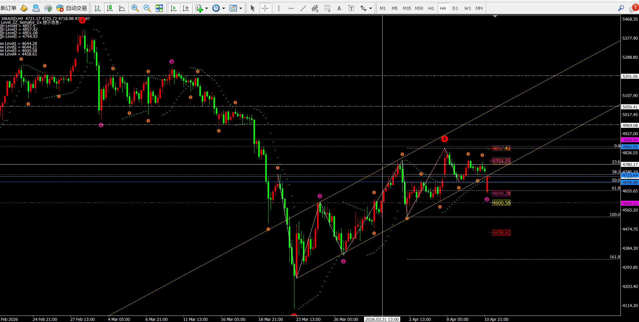 缺口还存正在。从4小时的斐波拉契回调线一线小时来讲:目前价钱维持正在4756-4665区间震动;目前支持鄙人轨和均线一线小时目标macd死叉放量,看4700-4670(激进4732附近可起头空)而布林带三轨缩口也更好申明价钱的震动。目前日线目标马macd金叉放量震动,美军将伊朗口岸海通,目前4660-4760区间高估滴着即可。黄金投资我却赔本了!第二就是间接修复缺口后正在进行一次空。短期上方关心均线一线。防守4770,